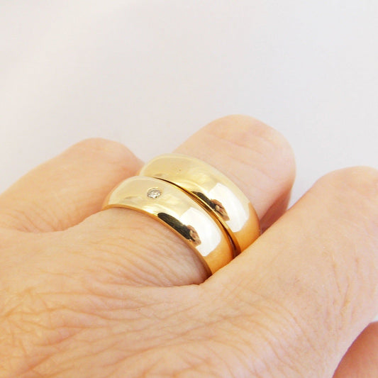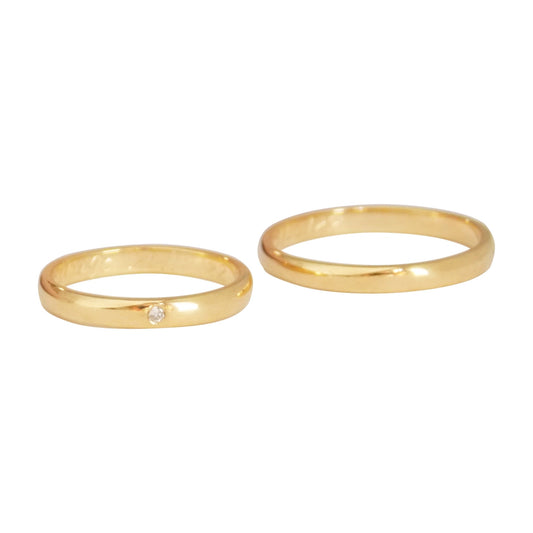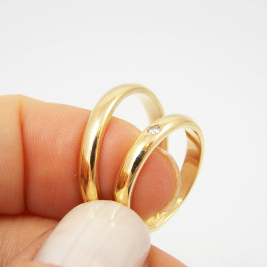 Alianças de Casamento Meia Cana com Diamante Ouro 18k