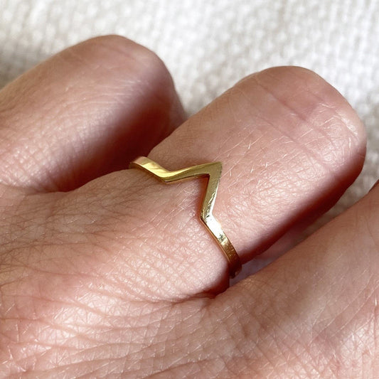 Anel de Ouro 18k Chevron Diamante