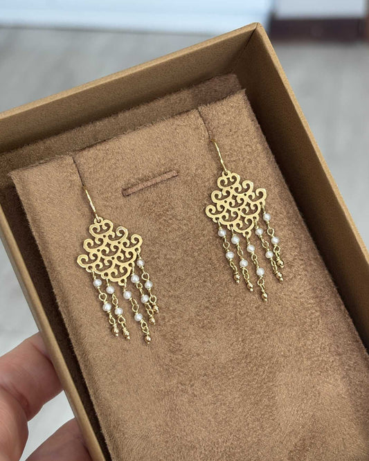 Brinco Chandelier Pérolas Ouro 18k
