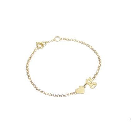 Pulseira Ouro 18k Dupla Iniciais e Coração