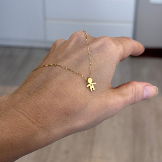 Colar Filhos Casal de Mãozinha 8mm de Altura em Ouro 18k