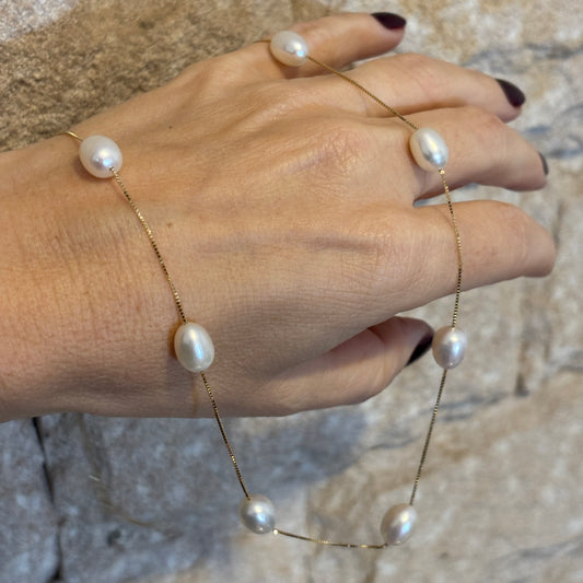 Produzidas sob medida, com espaçamento personalizado entre as gemas, nossas pulseiras com pérolas naturais unem suavidade, brilho e simbolismo.