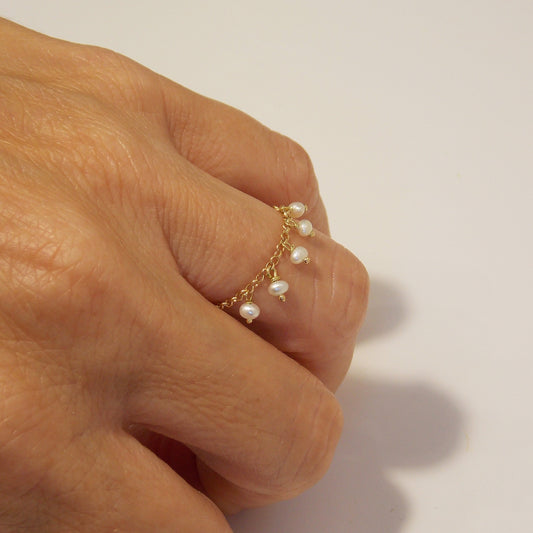 Brinco Gancho Correntes e Pérola Ouro 18k