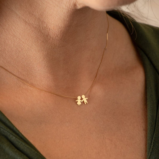 Colar Filhos Casal de Mãozinha 8mm de Altura em Ouro 18k