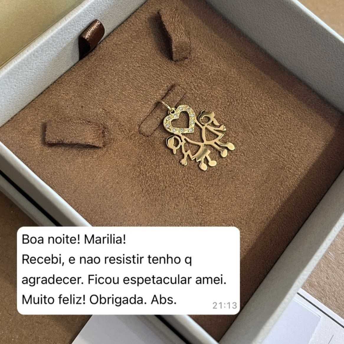 A corrente é veneziana tradicional, tem opções de espessura e de comprimento 40cm ou 45cm Os dois bonequinhos de mãos dadas representam o amor pela sua família, que podem ser os filhos, netos ou pessoas importantes para você. Altura do pingente: 8mm